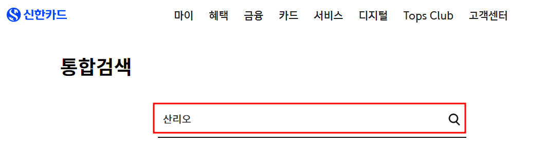통합검색에서 산리오를 검색하면 산리오 신용/ 체크카드가 나옵니다.