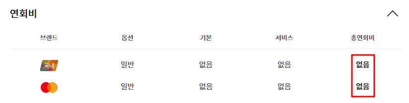 산리오 체크카드는 국내전용/해외겸용 모두 연회비가 없습니다.