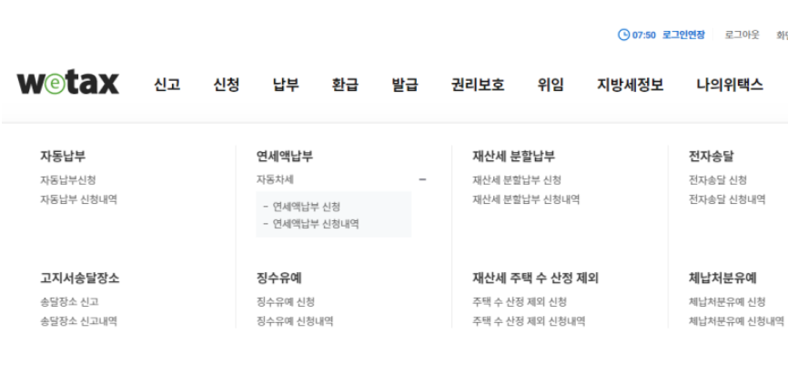 차량등록지가 서울이라면 위택스 또는 이택스 중에 선택해서 신청하실 수 있습니다.