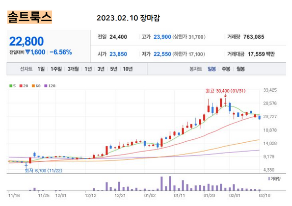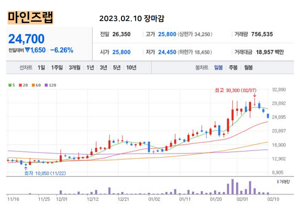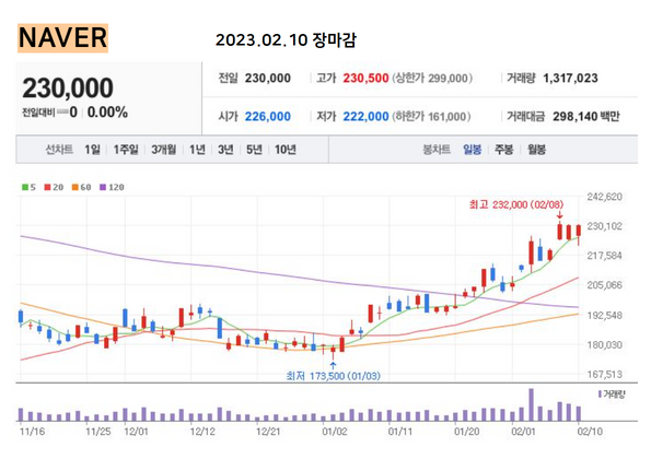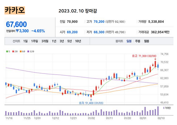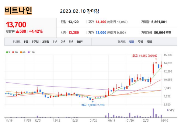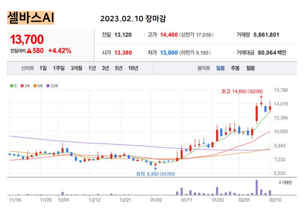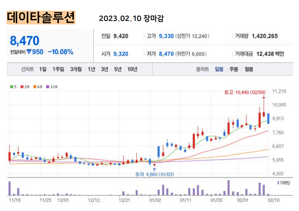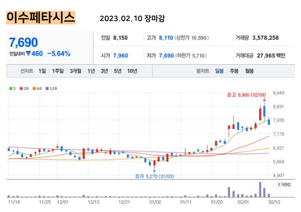 코난테크놀로지 2023년 02월 10일 종가 기준
