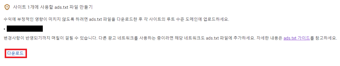 다운로드를 클릭하여 ads.txt 파일을 다운로드합니다.