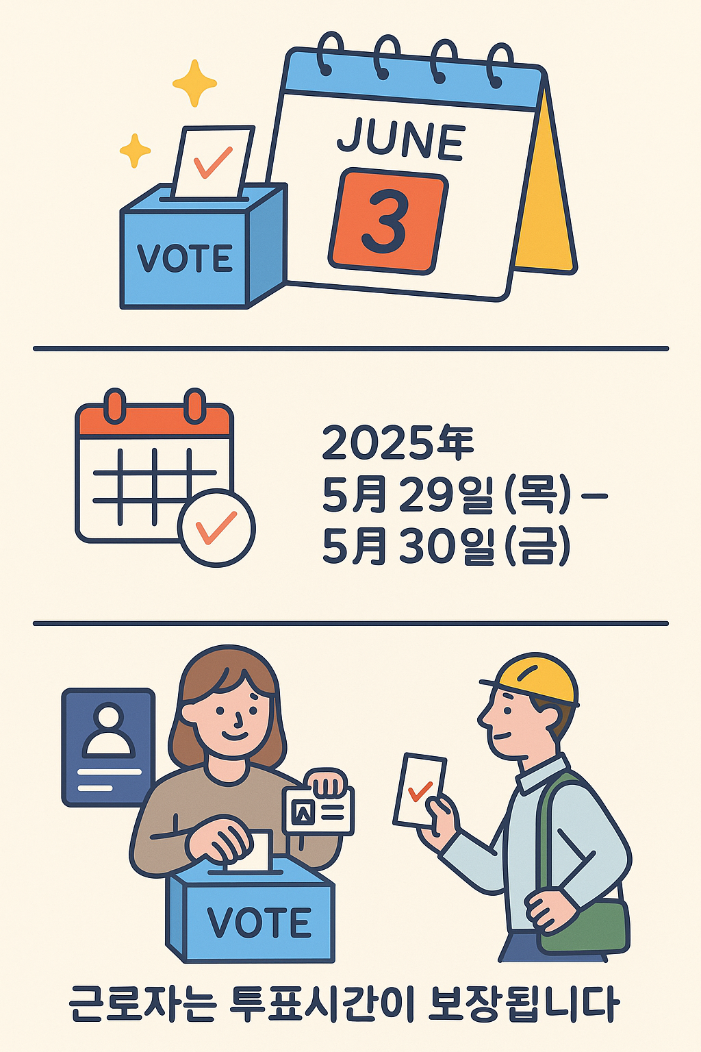 - 사전투표일: 2025년 5월 29일(목) ~ 5월 30일(금)